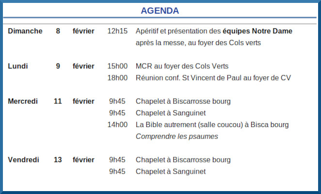 | « Horaire des messes | journal paroissial » |