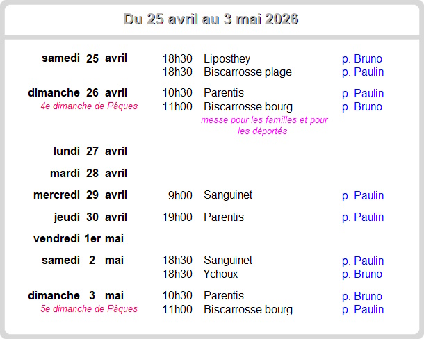 Les horaires des messesdu 12 avril au 19 juillet 2026c'est ICI